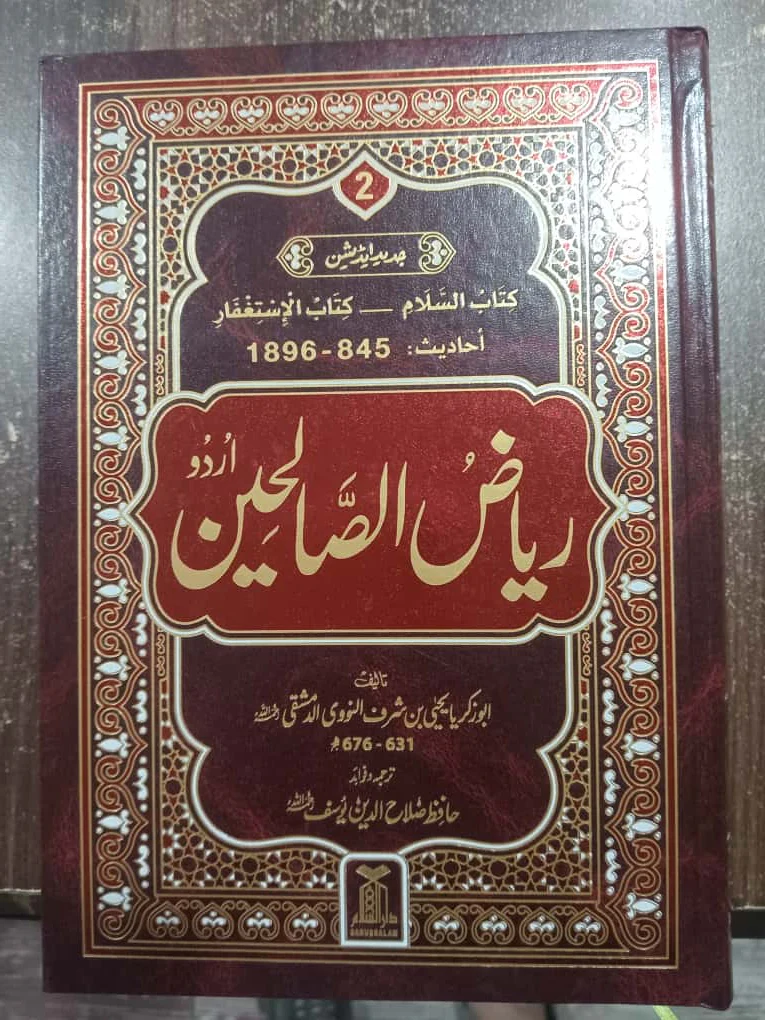Riyad‑us‑Saleheen – Urdu 2 Volume Set is a classic and highly respected Urdu compilation of authentic Prophetic narrations (Ahadith) originally compiled by Imam Abu Zakariya Yahya bin Sharaf An‑Nawawi (رحمه الله) and published in this edition by Darussalam Publishers. It brings together approximately 1,900–2,000 authentic hadiths drawn from the six major collections (Sahih al‑Bukhari, Sahih Muslim, Sunan Abu Dawood, Jami‘ at‑Tirmidhi, Sunan an‑Nasa’i, Sunan Ibn Majah) organised into 372 chapters and 19 thematic sections that address everyday life, morals, worship, manners, social conduct, and spiritual growth in light of the Qur’an and Sunnah. This two‑volume set is one of the most comprehensive, practical hadith collections used in the Muslim world for personal guidance, spiritual development, and teaching.
